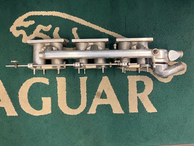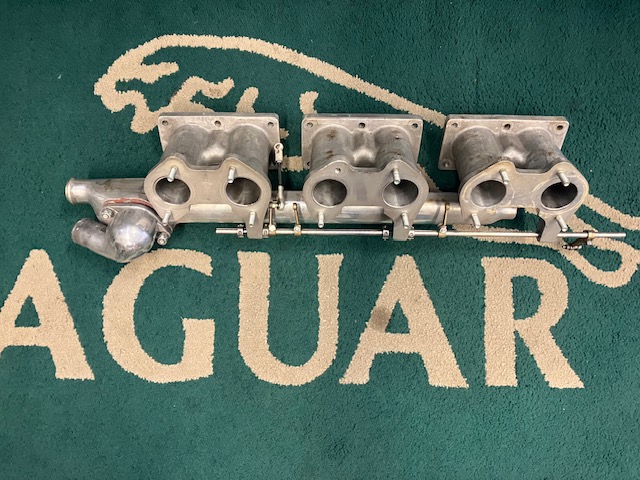 Jaguar inlet manifold suitable for mounting 3 x 45DCOE webber carbs on to 3.4 litre and a 3.8 litre straight port cylinder heads.