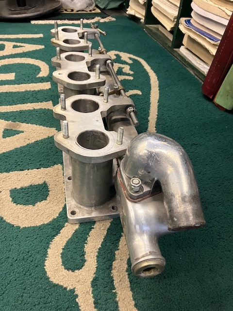 This was made by 'Dunford' well known and respected in the racing community, and was designed specifically for the D-Type replica but can be used on most Jaguar 6 Cylinder XK Type with straight port heads. This manifold is also fitted with a temperature switch on the water rail.